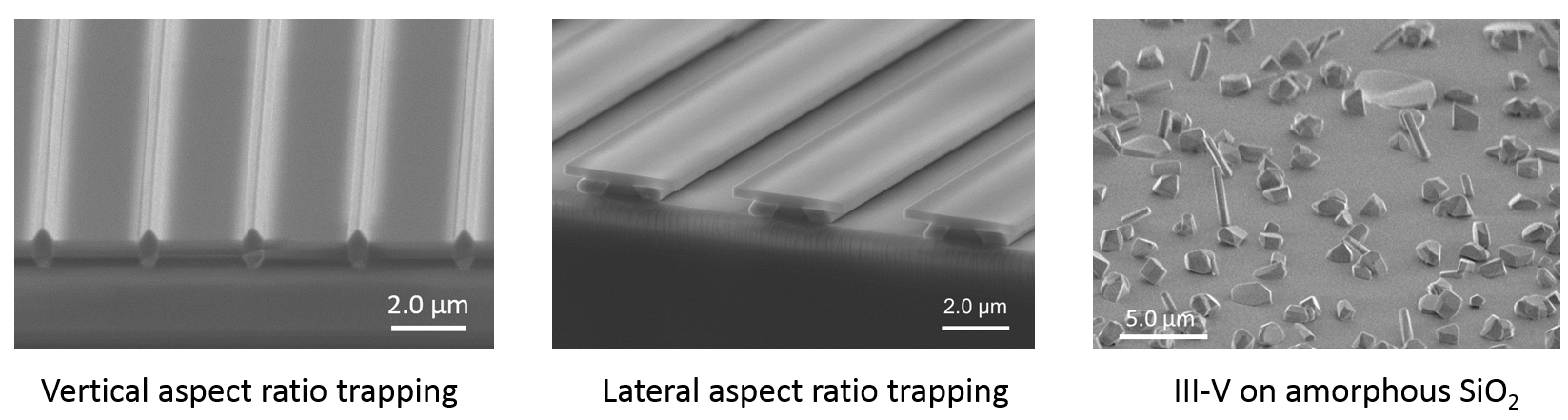 Fig.1. Selective area growth of III-V on SOI.
