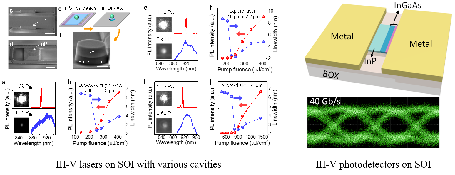 Fig.4. III-V lasers and photodetectors on a monolithic InP on SOI platform